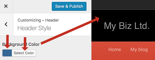 But you can see in the preview that the header background is black, and if you look more closely, you can see that in spite of the blue color, there actually is no color set, as you can see when you click Select Color.
