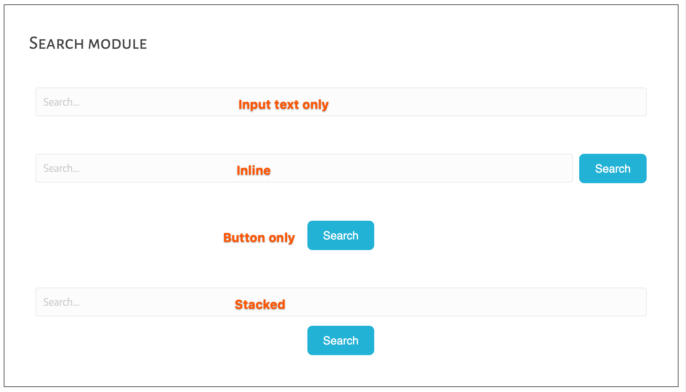 The Search module lets you place a standard WordPress search form in your layout. It has a standard input form and a button to activate the search query.