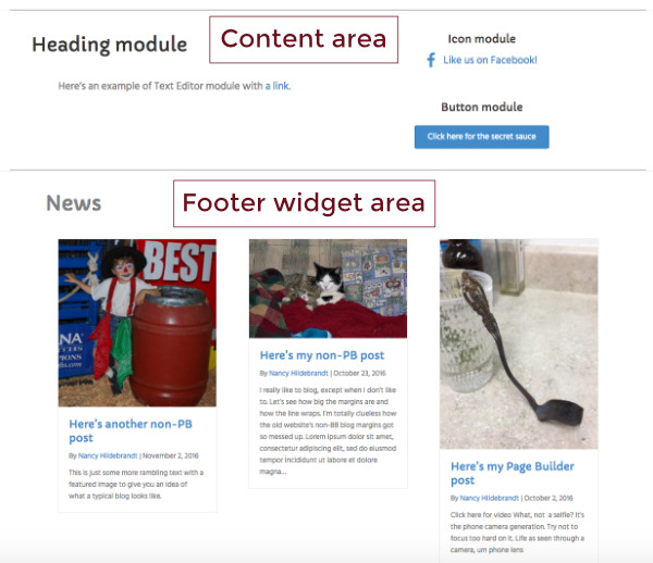 • Don't forget that you can also save a Posts module and use its shortcode in widgets or in non-Beaver builder areas of your site. Here's an example where the shortcode for a Posts module was inserted into the footer widget layout.